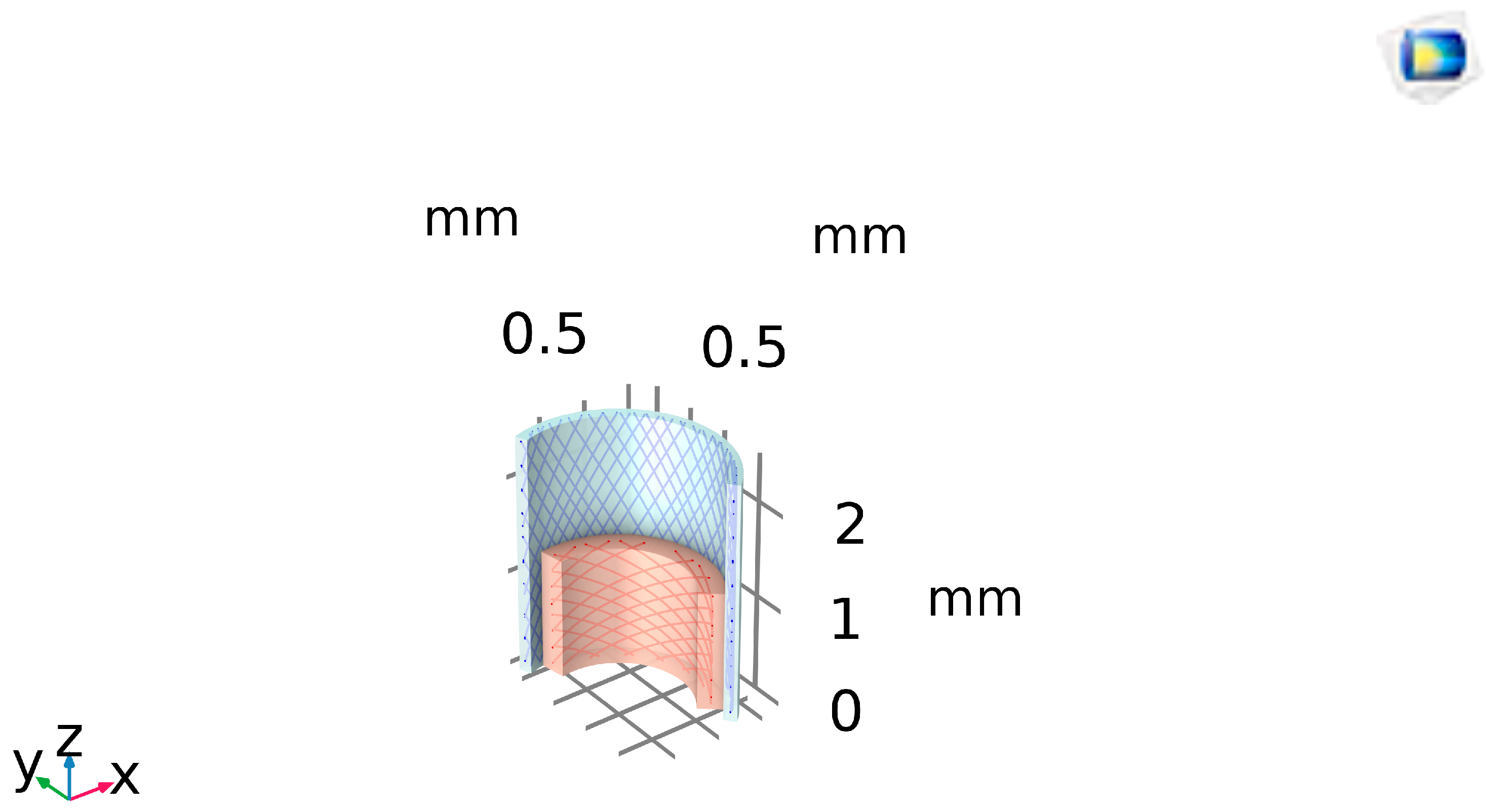 The artery graft composite’s deformation and stress distribution were calculated using the Solid Mechanics interface (study the mechanical behavior in COMSOL using the physiological conditions). Shear-dependent viscosity and thermal expansion were taken into consideration by coupling the physics interfaces of fluid flow and heat transfer.