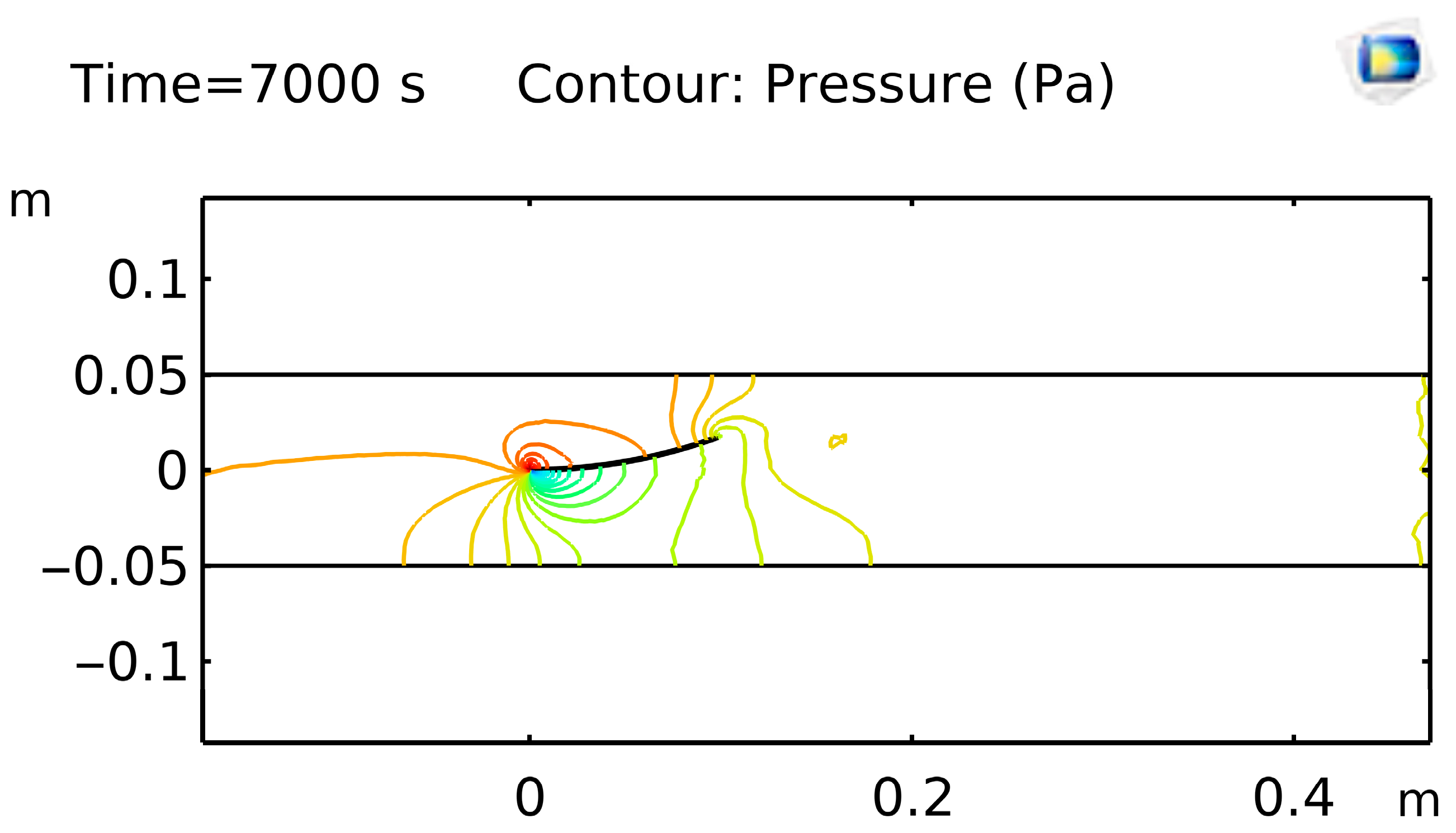 Figure 6 shows pressure mapping at t = 7000 s, revealing a sharp drop across the stenotic segment and a low-pressure recirculation bubble downstream, critical for predicting cavitation risk in graft prototypes.