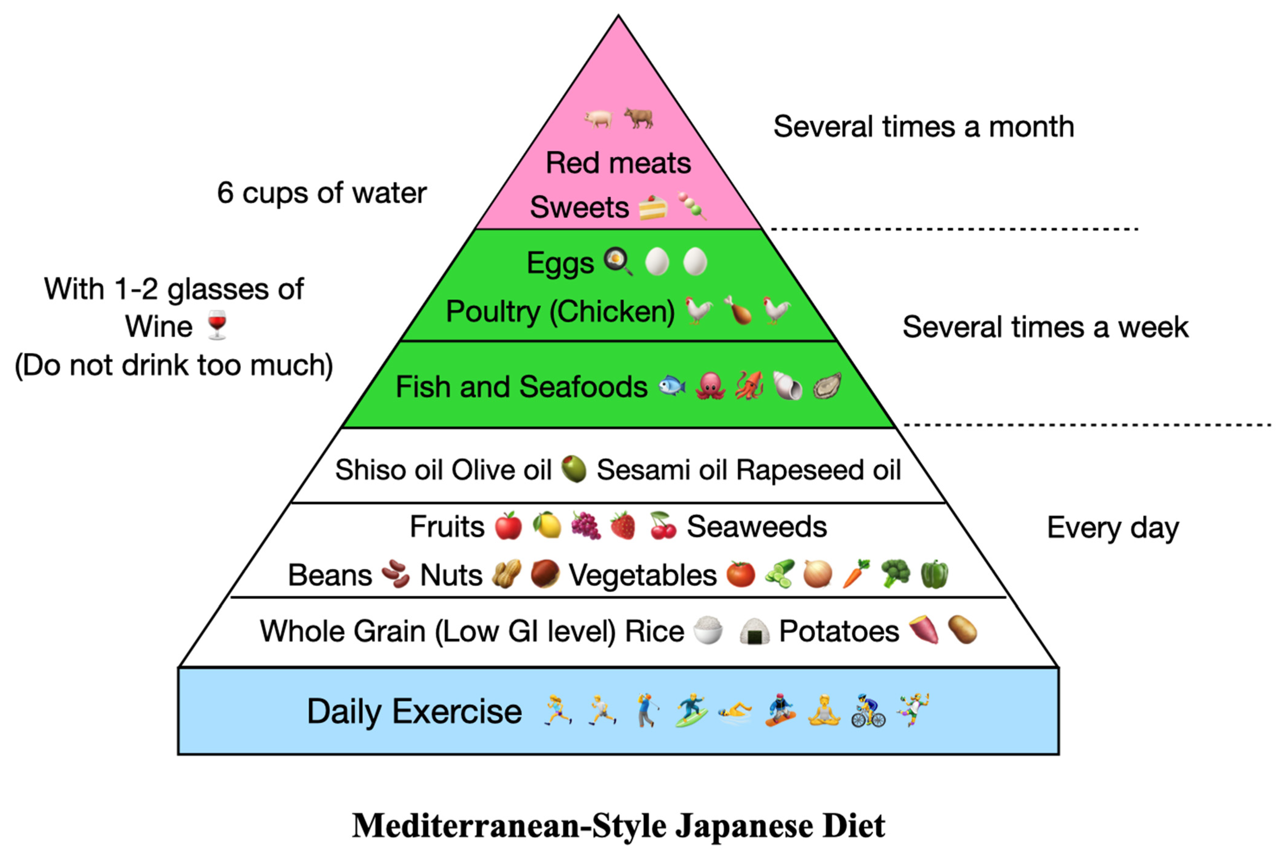 - Santa, K.; Kumazawa, Y.; Watanabe, K.; Nagaoka, I. The Recommendation of the Mediterranean-styled Japanese Diet for Healthy Longevity. Endocr. Metab. Immune Disord. Drug Targets 2024, 24, 1794–1812. [Google Scholar] [CrossRef]