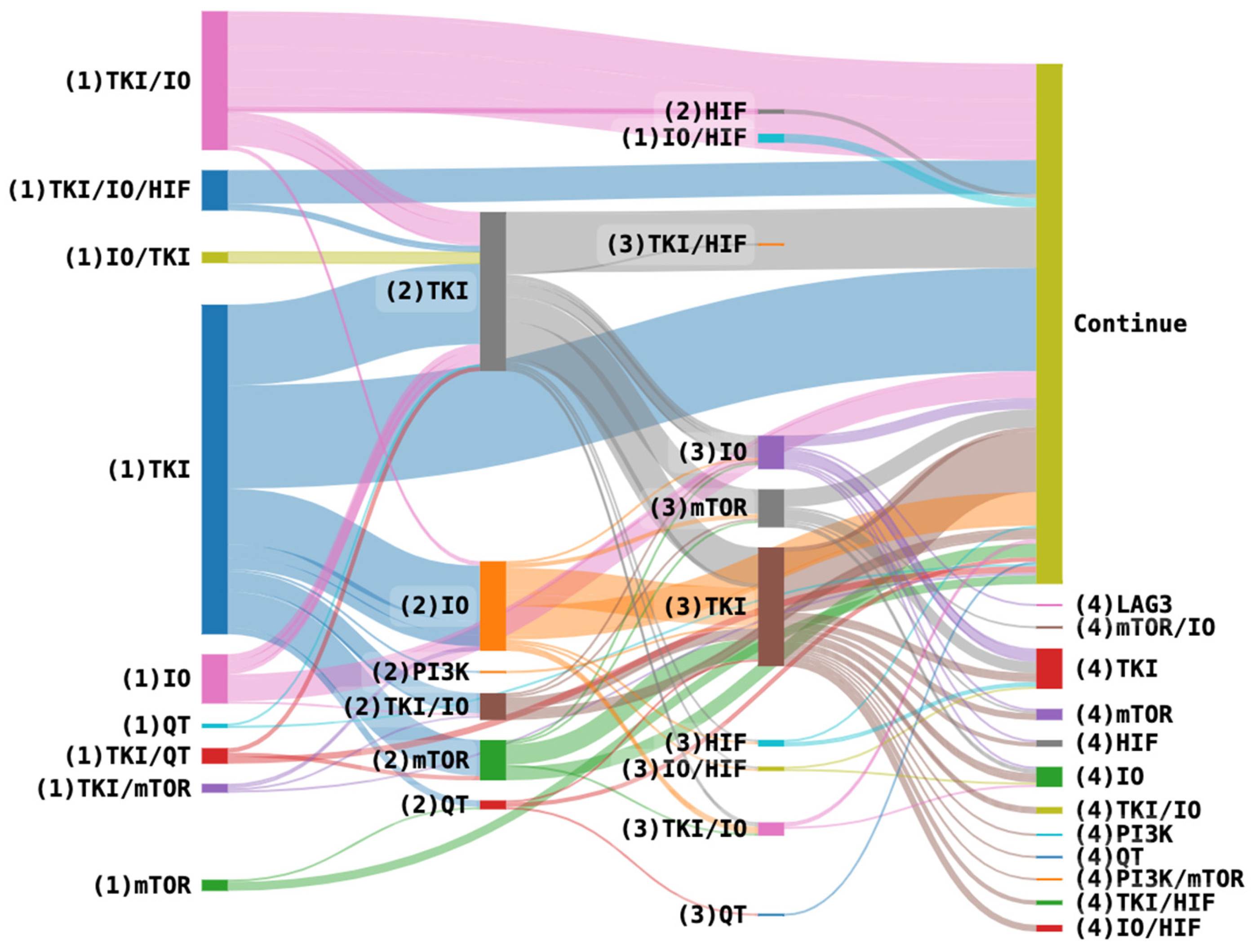 Conclusions: Adjusting for the effect of subsequent therapy had a limited impact on OS for CaboNivo but a larger impact for sunitinib. These results are consistent with clinical practice, further supporting 1L CaboNivo as a standard of care for aRCC.