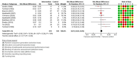 The certainty of the meta-analysis findings was assessed using the Grading of Recommendations, Assessment, Development, and Evaluation (GRADE) approach. The evidence was graded as high, moderate, low, or very low certainty. All the findings were initially graded as high certainty by default due to the exclusive inclusion of controlled trials in the analyses. The certainty was then downgraded based on pre-specified criteria including risk of bias, inconsistency, indirectness, imprecision, and publication bias.
