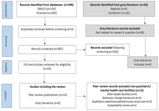 In total, 420 articles were identified. Following the removal of duplicate records, 411 titles and abstracts were screened for inclusion. The full texts of 24 articles were reviewed for eligibility and 14 studies were included in the review (Figure 1).