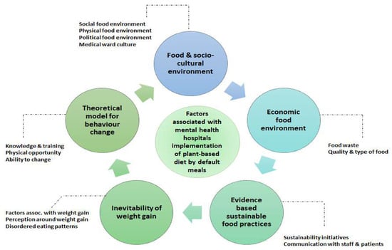 As such, the objective of this scoping review was to examine the influence of the social, medical, and physical environment on food during inpatient admissions to mental health hospitals, with the intention of identifying gaps in the existing evidence related to the default implementation of plant-based diets.