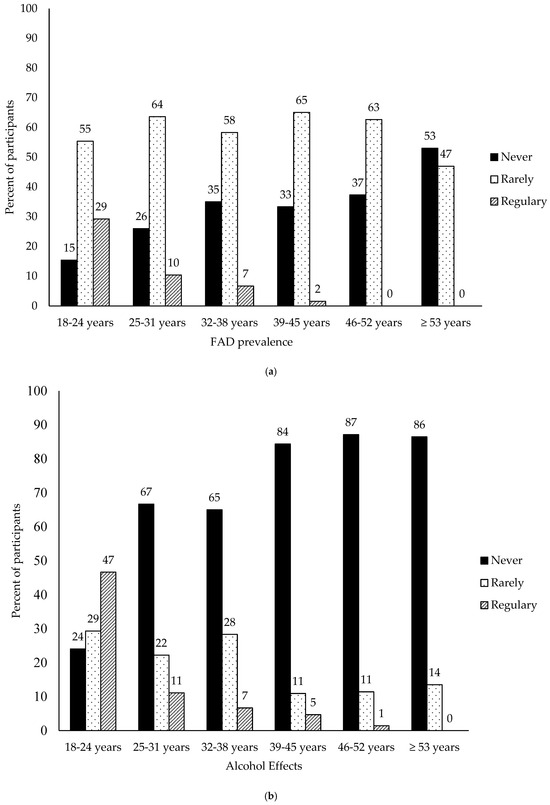 The cross-sectional study design is also a limitation. Without longitudinal follow-up, it is unclear whether the differences between age groups will continue, with the youngest age group continuing to exhibit higher engagement with FAD behaviours, or if increasing age will bring their behaviours into line with the middle- and older-age groups. With trends indicating a reduction in adolescents’ alcohol consumption [51], it might be expected that younger adults’ engagement with FAD might also reduce.
