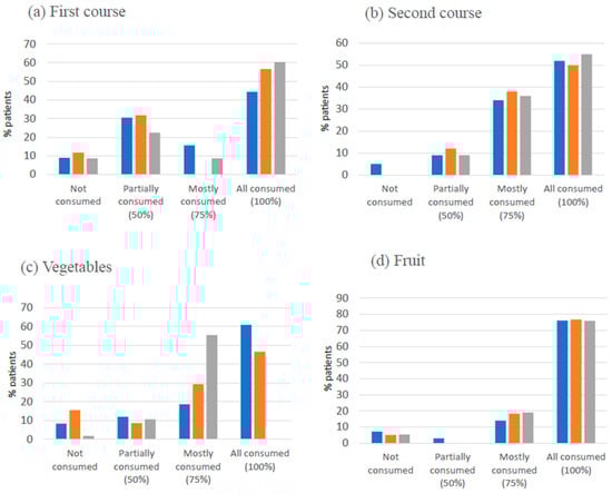 - Dupertuis, Y.M.; Kossovsky, M.P.; Kyle, U.G.; Raguso, C.A.; Genton, L.; Pichard, C. Food intake in 1707 hospitalised patients: A prospective comprehensive hospital survey. Clin. Nutr. 2003, 22, 115–123. [Google Scholar] [CrossRef] [PubMed]