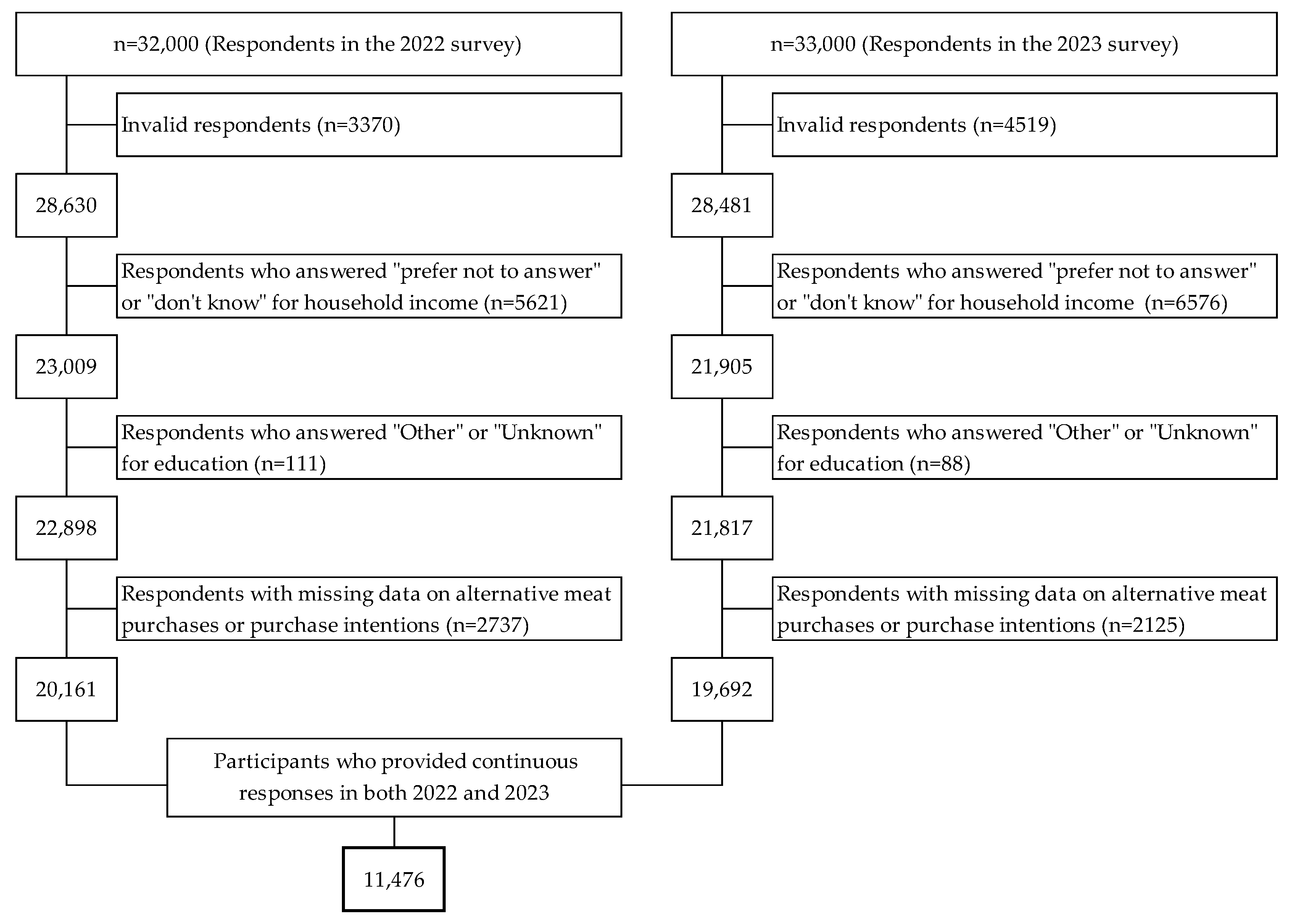 - Huang, S.; Uehara, T. Young consumers’ perceptions of and preferences for alternative meats: An empirical study in Japan and China. Front. Sustain. Food Syst. 2023, 7, 1290131. [Google Scholar] [CrossRef]