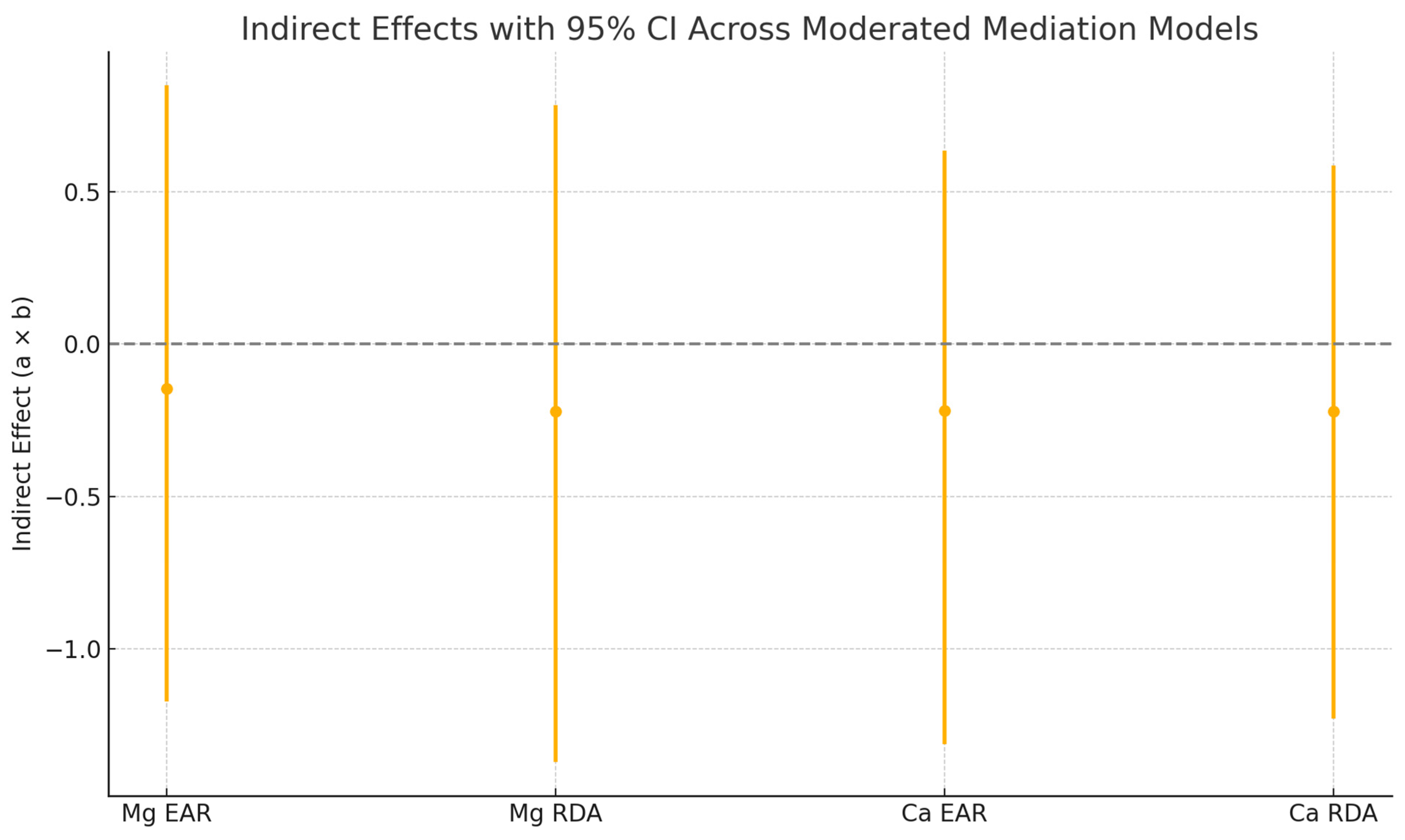 Figure 6 below illustrates the estimated indirect effects (a × b) across all models with 95% bootstrapped confidence intervals.