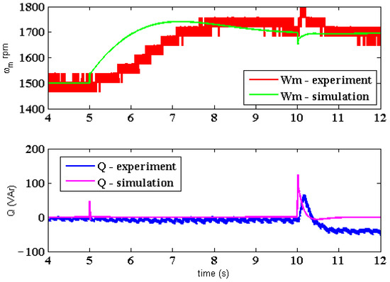 The resulting f2 response, which is observed as the mechanical shaft speed ωm response to the step change in f3*, is shown in the upper part of Figure 11. The operation of the Q2 controller is shown in the lower part of Figure 11, which is achieved by holding its reference despite the change in the input torque.