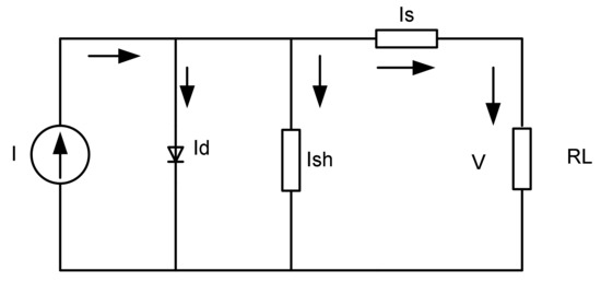 The equivalent electrical circuit shown in Figure 2 below represents the PV cell’s complex physics. The criteria listed below should be taken into account. Output current I is equal to the light-generated current IL minus the diode current ID and the shunt leakage current . The series resistance RS depends on the p–n junction depth, impurities, and contact resistance. In a perfect PV cell, RS = 0 and RSh = ∞.