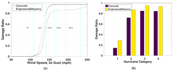 - Pinelli, J.-P.; Simiu, E.; Gurley, K.; Subramanian, C.; Zhang, L.; Cope, A.; Filliben, J.J.; Hamid, S. Hurricane Damage Prediction Model for Residential Structures. J. Struct. Eng. 2004, 130, 1685–1691. [Google Scholar] [CrossRef]