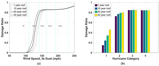 Every year the United States faces threats from hurricane events. Researchers emphasize the increased risk due to climate change and constant exposure growth along the coast of the United States [1,2,3]. Dollar losses in the year 2020 related to hurricanes were close to $20 billion, and totaled $92 billion in 2017 [4]. Recently, severe storms such as Hurricanes Ida, Irma, Maria, Michael and Matthew have caused extensive damage to insured properties [5,6,7]. Post-damage surveys [5,6,7,8,9,10] consistently report roof damage [7,8,9,10] to buildings. Hence, it is important to understand the various factors that influence losses during hurricane events.