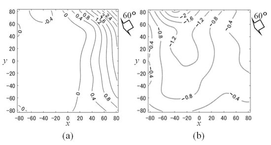 Contours of the maximum and minimum peak wind force coefficients at θ = 60°: (a) Maximum; (b) minimum.
