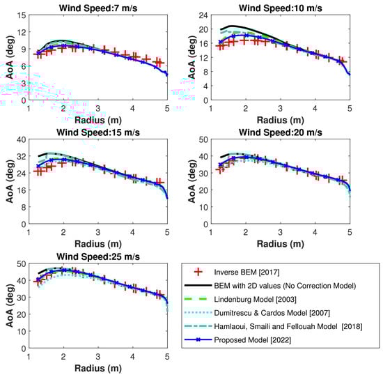 - Rahimi, H.; Schepers, J.; Shen, W.Z.; García, N.R.; Schneider, M.; Micallef, D.; Ferreira, C.S.; Jost, E.; Klein, L.; Herráez, I. Evaluation of different methods for determining the angle of attack on wind turbine blades with CFD results under axial inflow conditions. Renew. Energy 2018, 125, 866–876. [Google Scholar] [CrossRef]