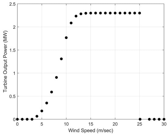 with N being the number of turbines upstream of turbine i. Knowing allows for calculating the turbine’s power production using the power curve provided by the manufacturer (Figure 3).