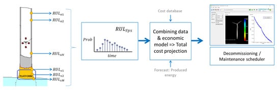The output of the Local Prognosis described in the previous subsection is a probability distribution of the RUL for a given measurement location on the tower (i.e., local RUL). It is assumed that the measurement locations are not close to each other, so that each local RUL estimation represents the status of a part or component of the monitored tower. Note that the locations may belong to areas characterized by different corrosivity (e.g., the atmospheric or splash zones) and/or different critical wall thicknesses.