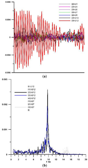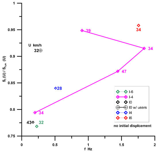 The vibration relevance is evaluated using the ratio of the spectral component, Sf (from a given frequency, f), to the spectral component, Sf0, of the first mode with no wind (Figure 15b).