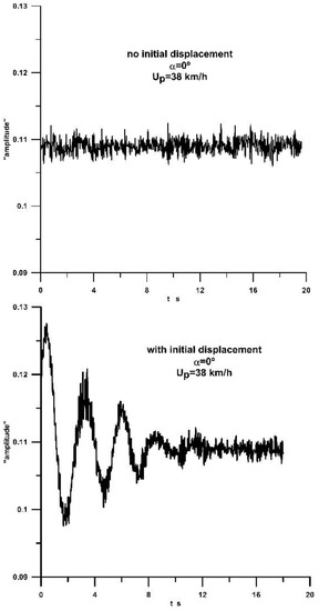 It was shown [24] that wind loading corresponds to a change in the structure’s stiffness and in the damping factor, ζ (=δ/2π), that may be estimated by the logarithmic increase or decrease, δ, of the displacement’s amplitude, at,