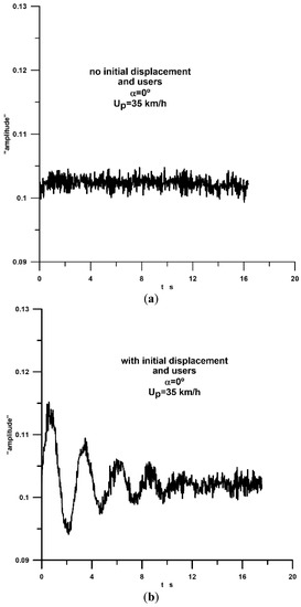 Deck torsional movement without and with previous swing displacement with users (a,b).