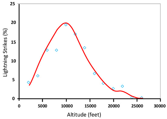 - Schulz, W.; Diendorfer, G. Lightning characteristics as a function of altitude evaluated from lightning location network data. In Proceedings of the International Conference on Lightning and Static Electricity, Society of Automotive Engineers, Toulouse, France, 22 June 1999. [Google Scholar]