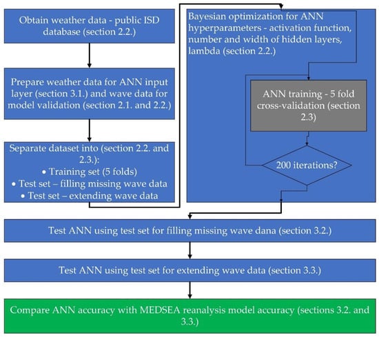 The ANN building workflow that was used in the paper is summarized in Figure 3, with corresponding sections for a detailed explanation of the various steps undertaken during the ANN model building and accuracy testing.