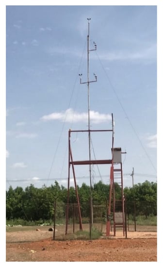 The measurement tower from which the data were taken is located inside the National Energy Research Center (NERC) campus in the Soba suburb, Khartoum, and has a wind monitoring tower. At the top of the tower, a first anemometer, which measures wind speed, is fixed. Right beneath it, a wind vane that detects the wind direction is placed at . Below the wind vane at , a second anemometer is fixed, which provides a separate measurement for the wind speed. Additionally, there is a second wind vane at , reading another measurement for wind direction.