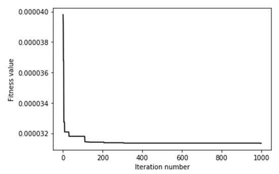 Figure 10 illustrates the monthly average wind speeds at the NERC site, as drawn from the collected data. Additionally, Table 3 lists the average wind speed, frequency, frequency percentage, and cumulative frequency percentage corresponding to equal-width wind speed classes. Table 2 provides the parameters specific to the FA technique, among them the stopping criterion, which was 1000 iterations, that we used to obtain high-accuracy results. It took the FA algorithm less than 200 iterations to reach the steady state, meaning that the fitness value converges or an exact solution is reached. Figure 11 shows that the convergence to the optimal solution occurred approximately after 100 iterations. It is worth mentioning that the researchers in this study relied on Python code to execute the artificial intelligence algorithm.
