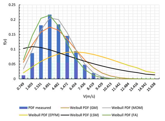The Energy pattern factor method (EPFM) estimates the scale and shape parameters of the Weibull distribution using Equations (5)–(7) [].