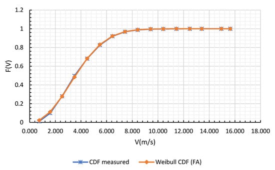 The average speed for the wind energy assessment must also consider the dataset’s power content. Hence, the weighted average expression represented by Equation (23) was used [], and a was obtained.