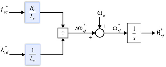 Therefore, with the control reference signals, (Equation (16)) and (Equation (17)), and the measurement of the machine electrical speed (), the orientation angle can be obtained, as shown in Figure 7, where is the synchronous speed.