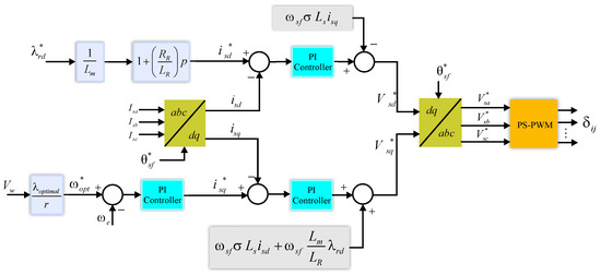 As previously mentioned, the GSCs have the function of controlling the DC-link voltages, as well as executing the control of reactive power in the grid. The MSCs are mainly responsible for the maximum power point tracking (MPPT) of the wind turbine and the induction machine magnetization [35].