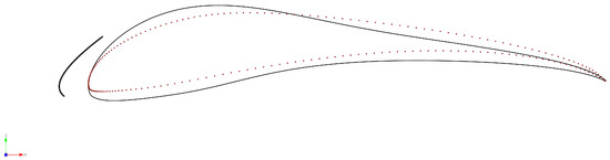 Geometry of S1223 (red dots) and optimised EW01 (black line).