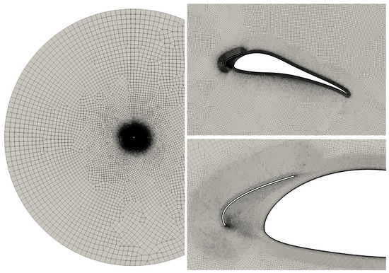 Therefore, the decision was made to instead employ RANS simulations right away. Steady-state 2D simulations were set up for each evaluation, using the k--SST turbulence model with the - transition model [23]. The choice of turbulence model will be discussed in Section 3.2.