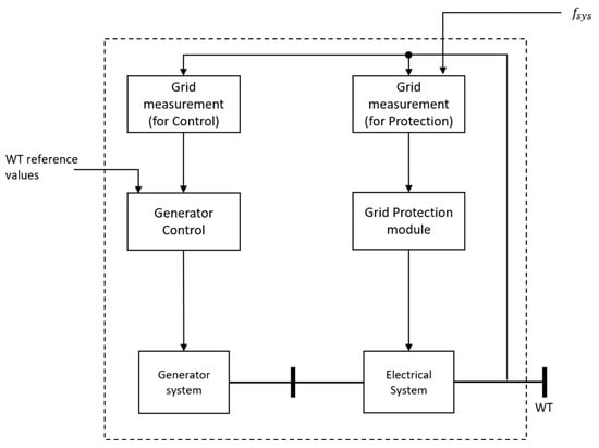 Generic model of a Type 4 wind turbine as shown in [19] *. * IEC 61400-27-1 ed.2.0 “Copyright © 2020 IEC Geneva, Switzerland. www.iec.ch (accessed on 19 June 2023).”.