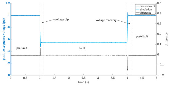 Measured and simulated positive sequence voltage [21].