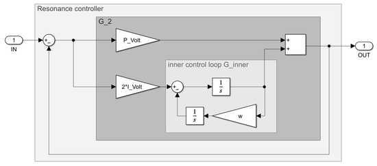 To set up the transfer function of the PR controller, Figure 17 shows the corresponding block diagram. and describe the control parameters of the PR controller. The angular frequency corresponds to a 50 Hz system. Establishing the closed-loop transfer function according to Equation (12) first requires the analysis of the two control loops and [21].