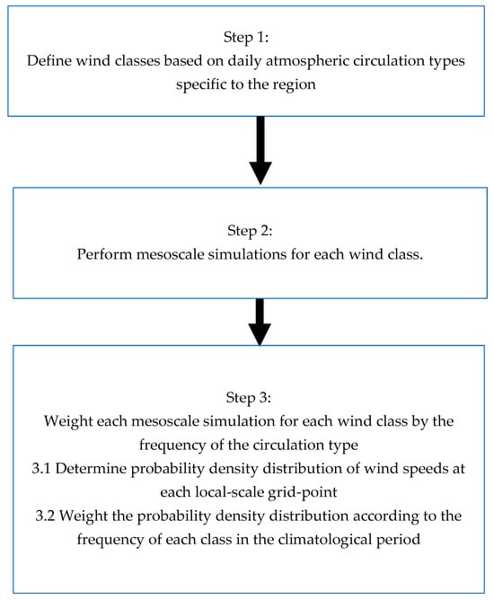 2.1. Statistical–Dynamical Downscaling Methodology to Develop High-Resolution Wind Maps