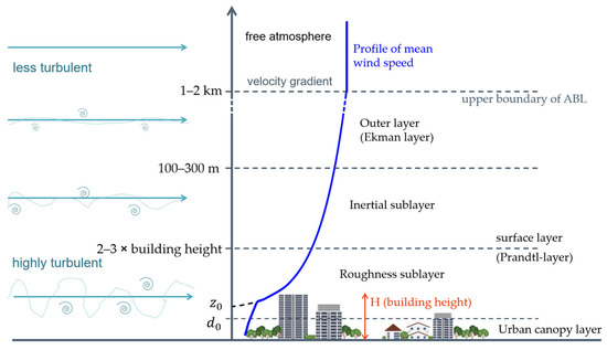 - Kastner-Klein, P.; Rotach, M.W. Mean flow and turbulence characteristics in an urban roughness sublayer. BLM 2004, 111, 55–84. [Google Scholar] [CrossRef]