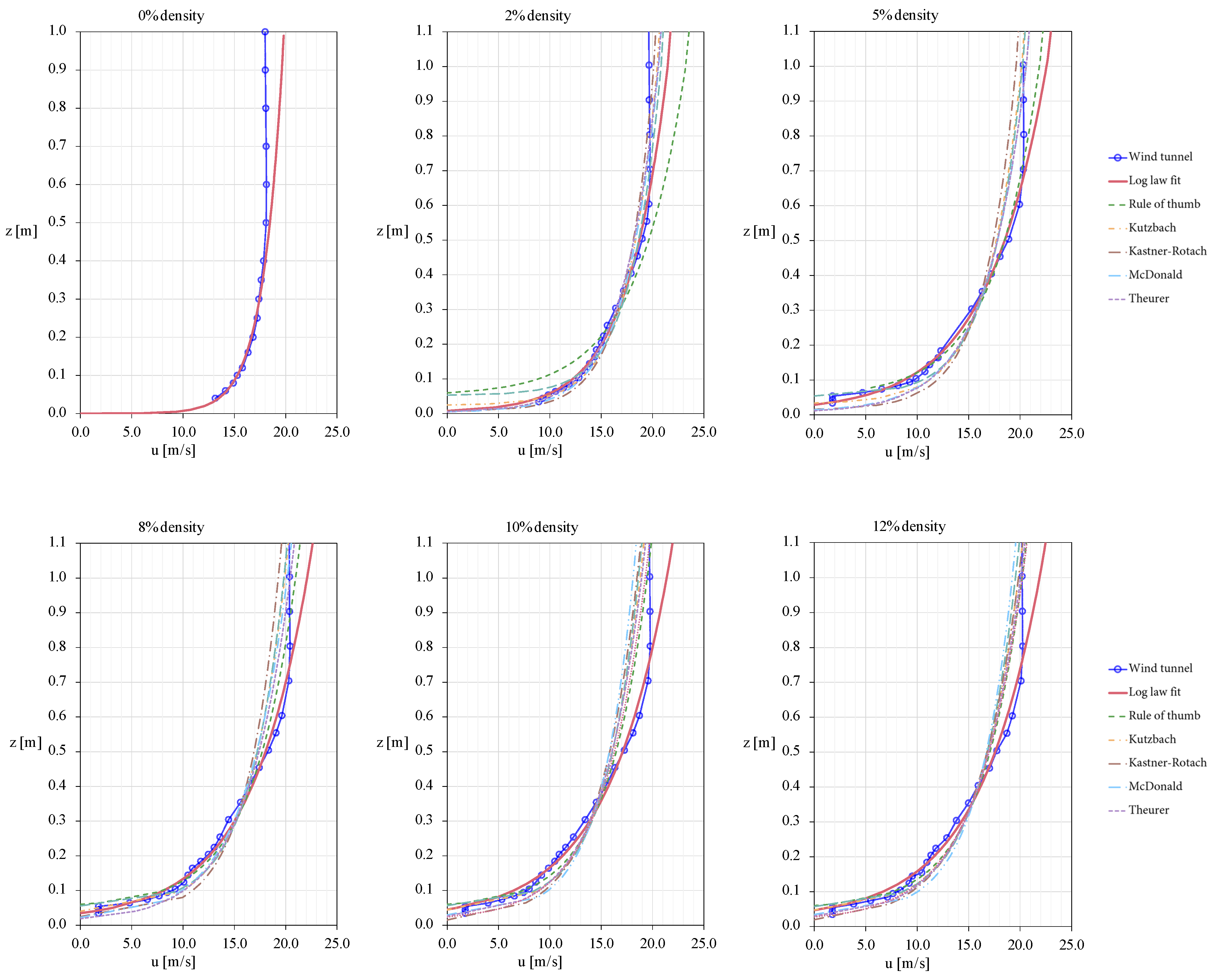 | Experimental Fit | Rule of Thumb | Kutzbach | Lettau | Counihan | McDonald | Kastner-Rotach | Theurer | ||