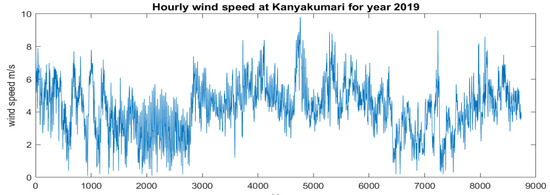 A dataset containing wind speed measurements gathered from a wind farm in Kanyakumari, India, over a period of one year, with data recorded at 60 min intervals was considered. A graphical visualization of this wind speed sequence, showing how wind speed fluctuates over time, is shown in Figure 3. Before analysis, it was essential to pre-process the data, which may involve cleaning any missing or erroneous values and potentially converting timestamps into a standardized format if necessary. It was important to visualize the wind speed sequence to explore its temporal patterns, trends, and seasonal variations.