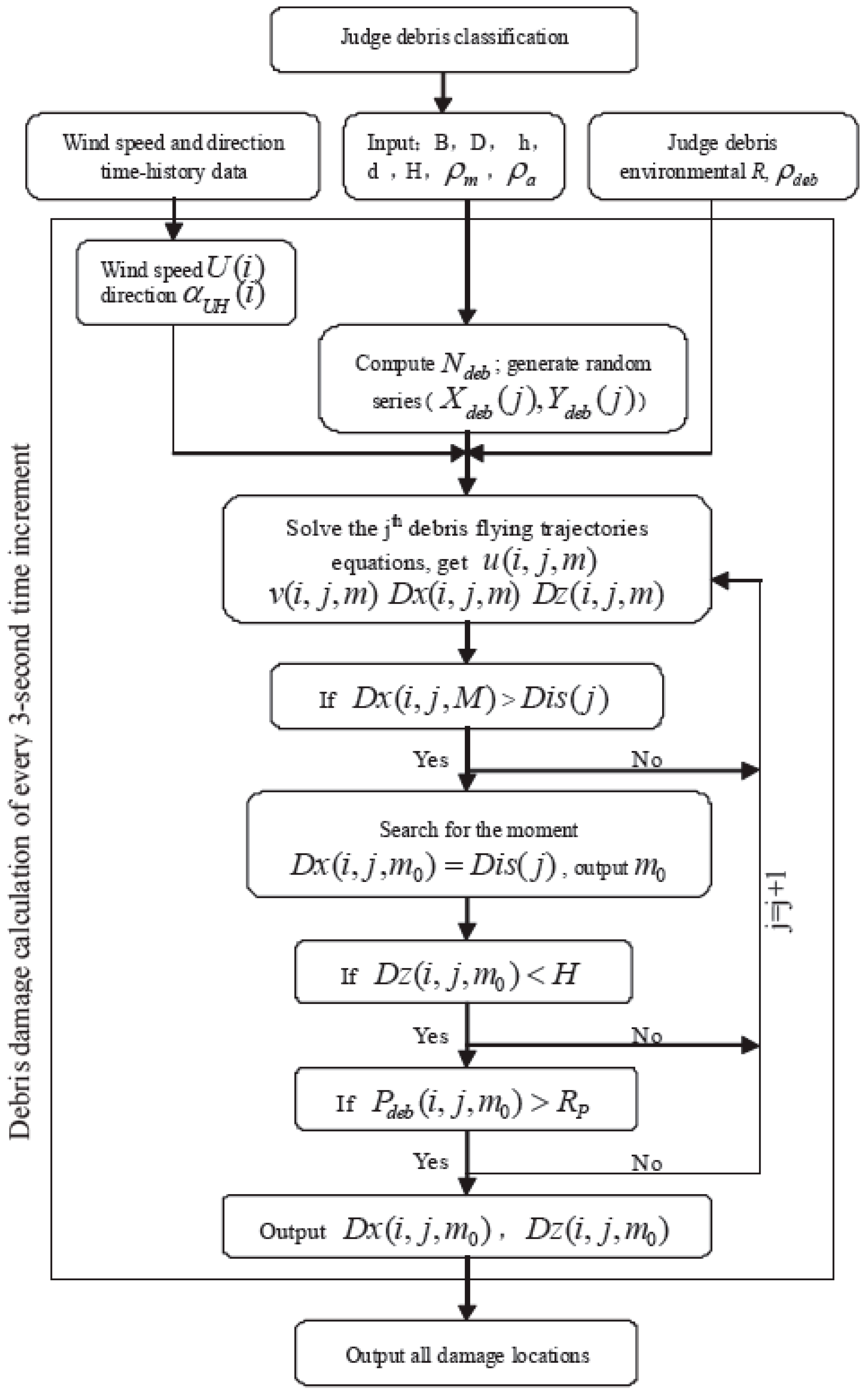4]. Below is the flowchart illustrating the numerical analysis conducted by the authors to assess windborne damage to buildings (