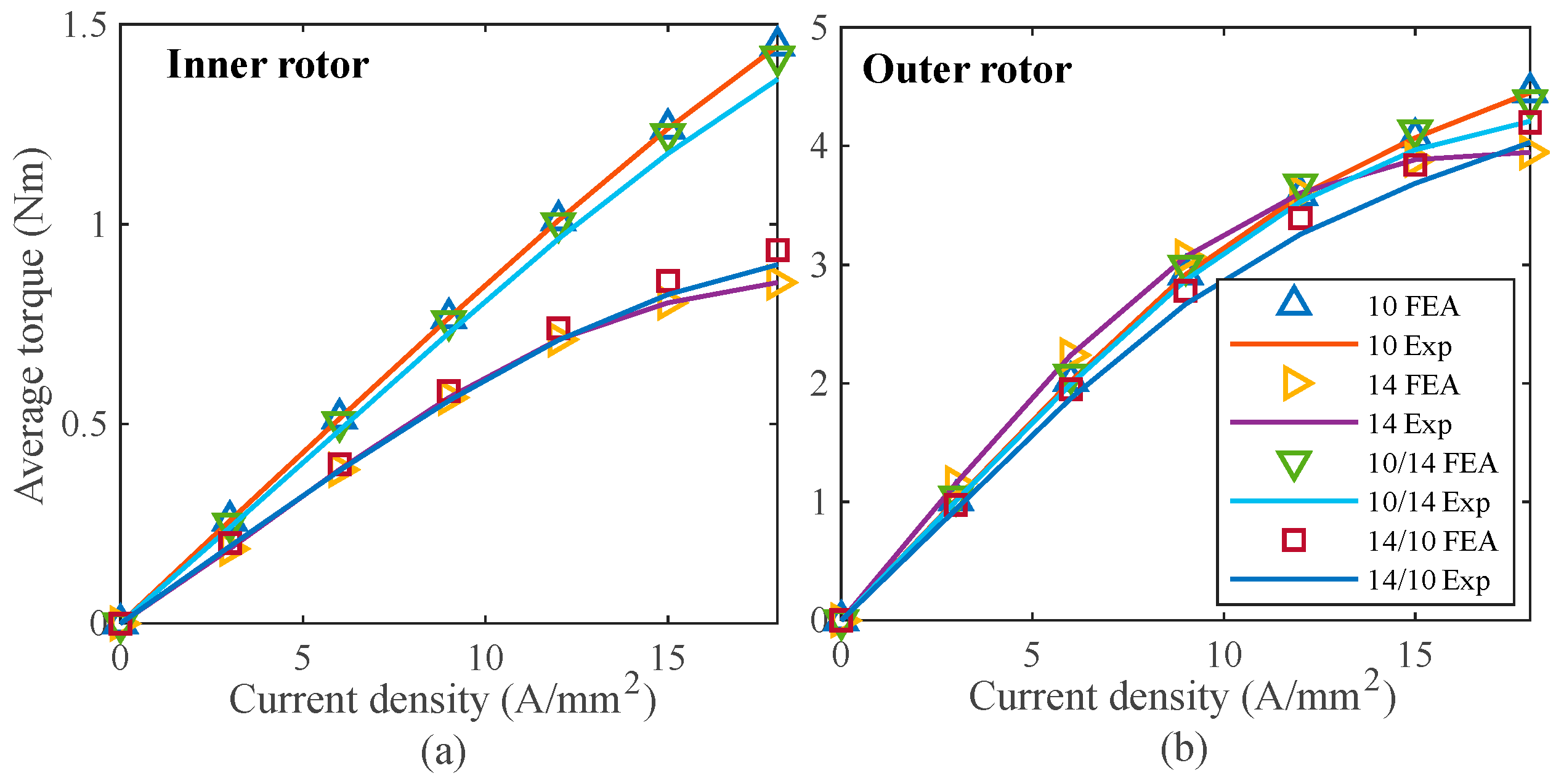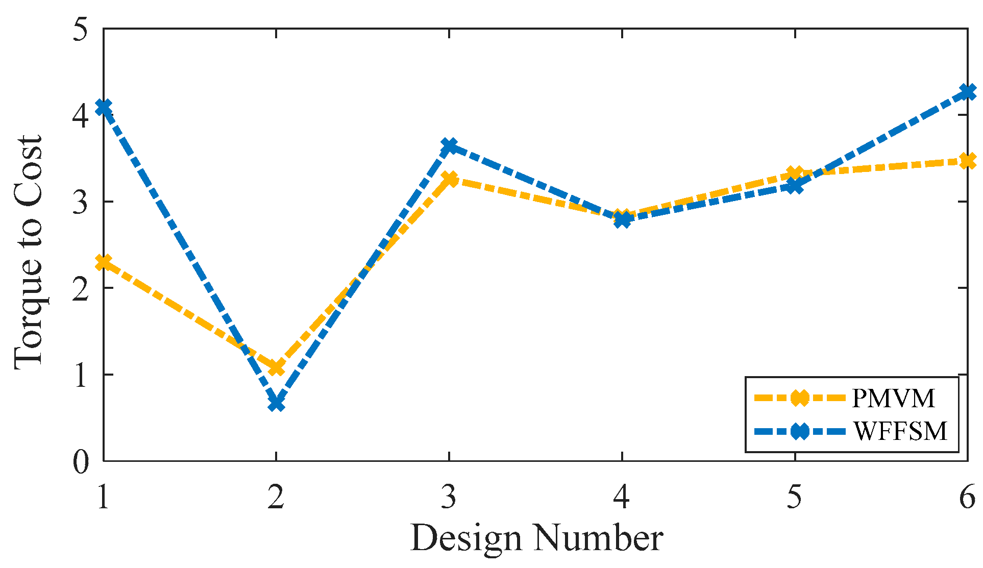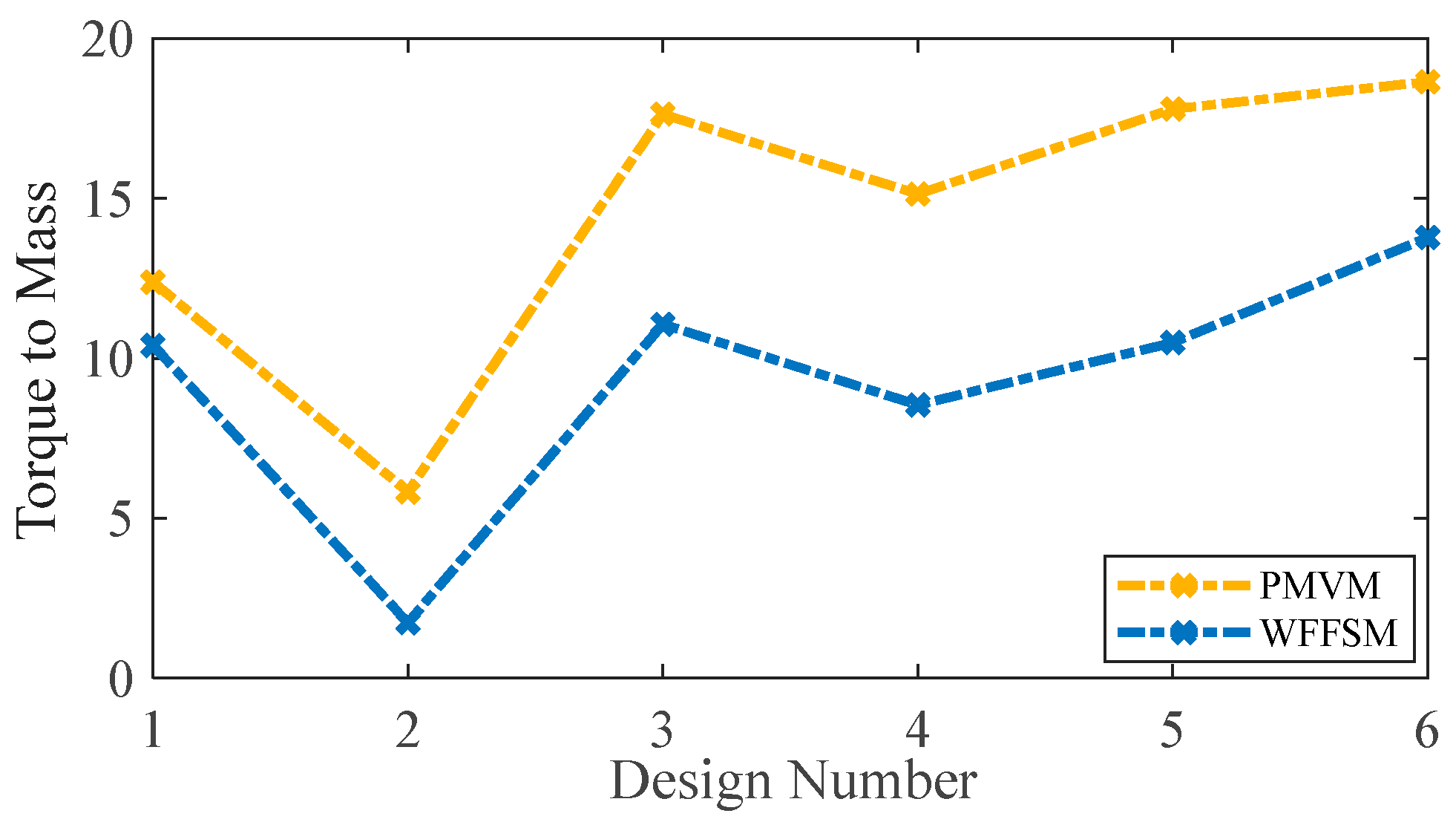 - Liu, Y.; Zhu, Z.Q. Influence of gear ratio on electromagnetic performance and geometries of vernier permanent magnet synchronous machines. In Proceedings of the 2017 IEEE Energy Conversion Congress and Exposition (ECCE), Cincinnati, OH, USA, 1–5 October 2017; pp. 2453–2460. [Google Scholar]