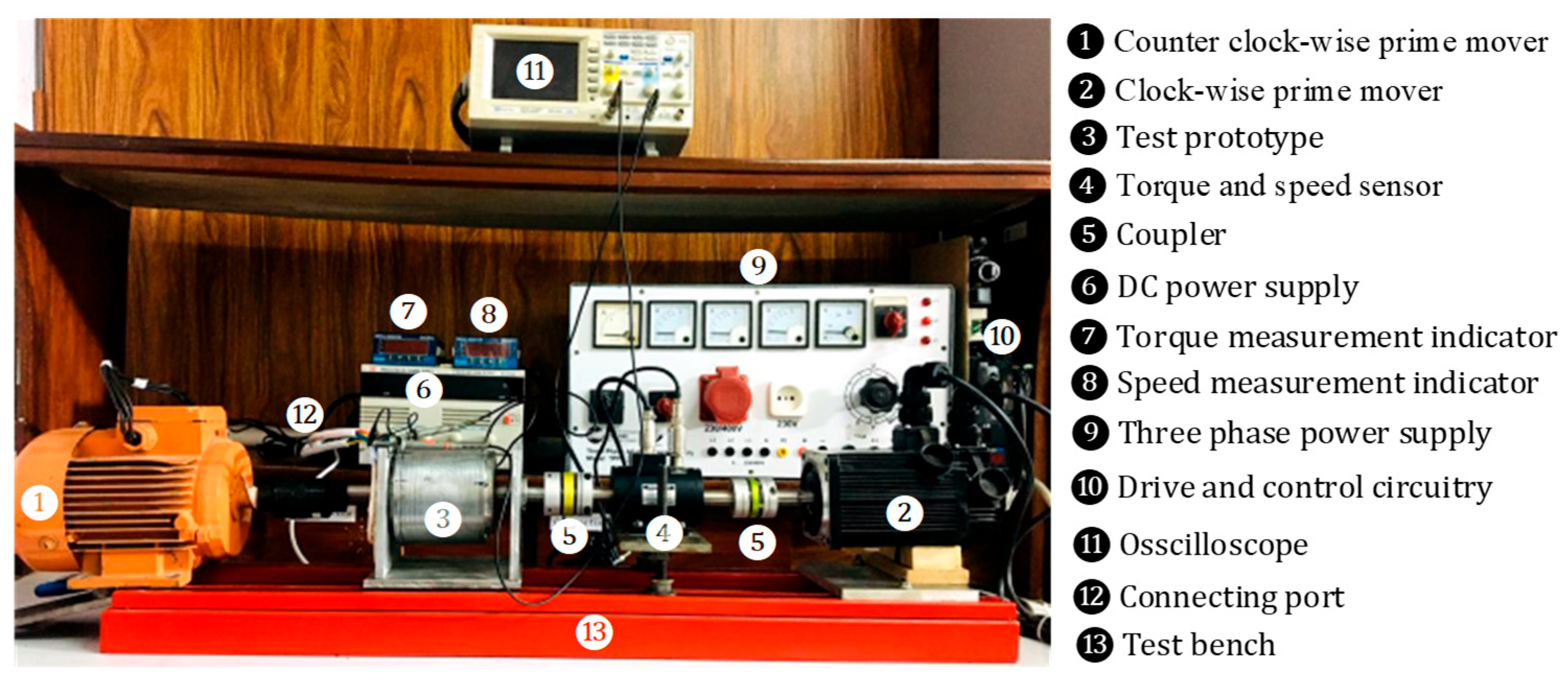 - Ullah, W.; Khan, F.; Akuru, U.B.; Hussain, S.; Yousuf, M.; Akbar, S. A Novel Dual Electrical and Dual Mechanical Wound Field Flux Switching Generator for Co-Rotating and Counter-Rotating Wind Turbine Applications. IEEE Trans. Ind. Appl. 2024, 60, 184–195. [Google Scholar] [CrossRef]