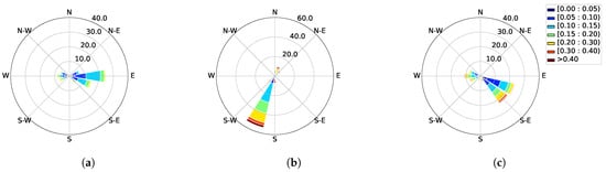 Turbulence rose showing distribution of turbulence intensity and wind directions. (a) Site 1 Sitapur; (b) site 6 Kagbeni; (c) site 9 Saptami.