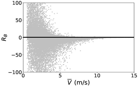 Figure 10 presents the distribution of the Bulk Richardson number () as a function of mean wind speed at site 1 (Sitapur). A critical Richardson number, , is indicated by the horizontal dark line in the figure. Data with mean wind speeds m/s are excluded due to potential measurement uncertainties at low wind speeds. The results clearly show a larger proportion of unstable points, particularly at higher wind speeds (e.g., m/s). Over the one-year period, the atmospheric boundary layer (ABL) was unstable 41% of the time, stable for 33%, and near-neutral () for the remaining 26%. The higher frequency of unstable stratification suggests enhanced turbulence at the site despite having flat terrain.