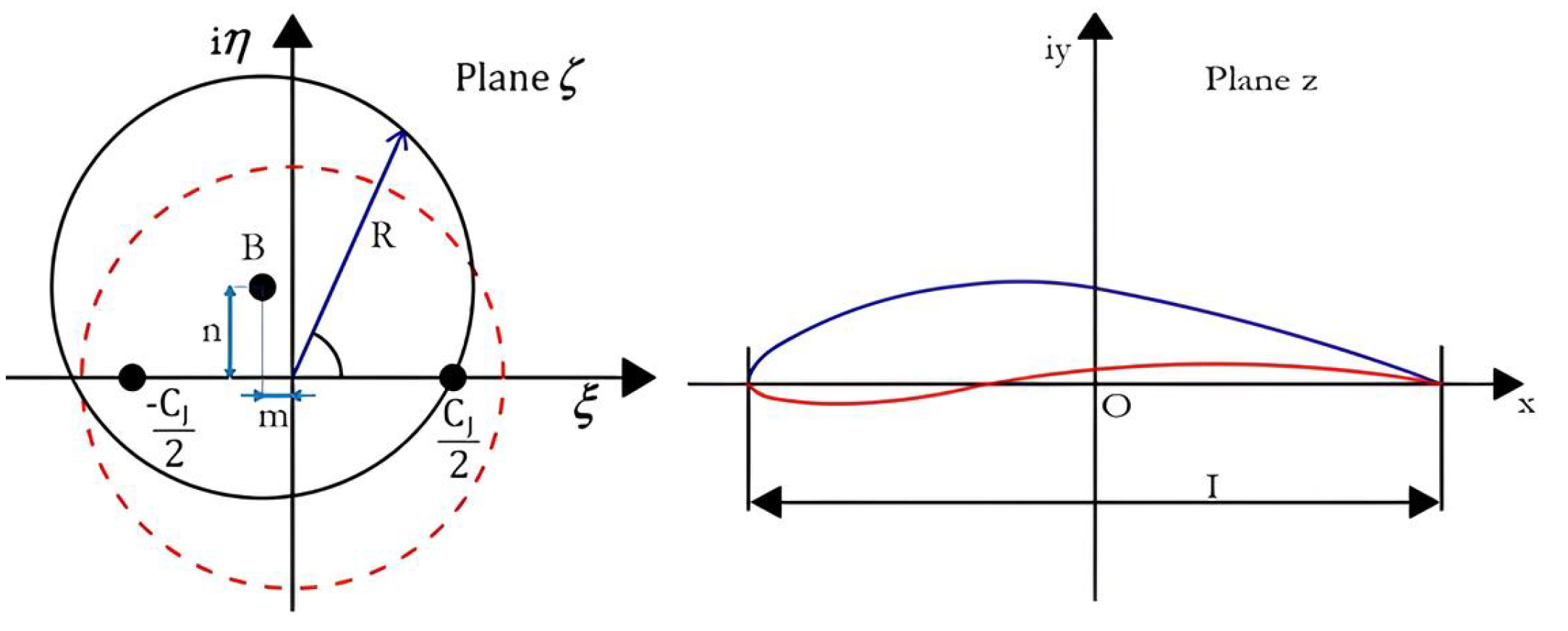 Effect of varying Joukowsky parameters a, b, and m on airfoil shape. Shifting controls maximum thickness position along the chord.