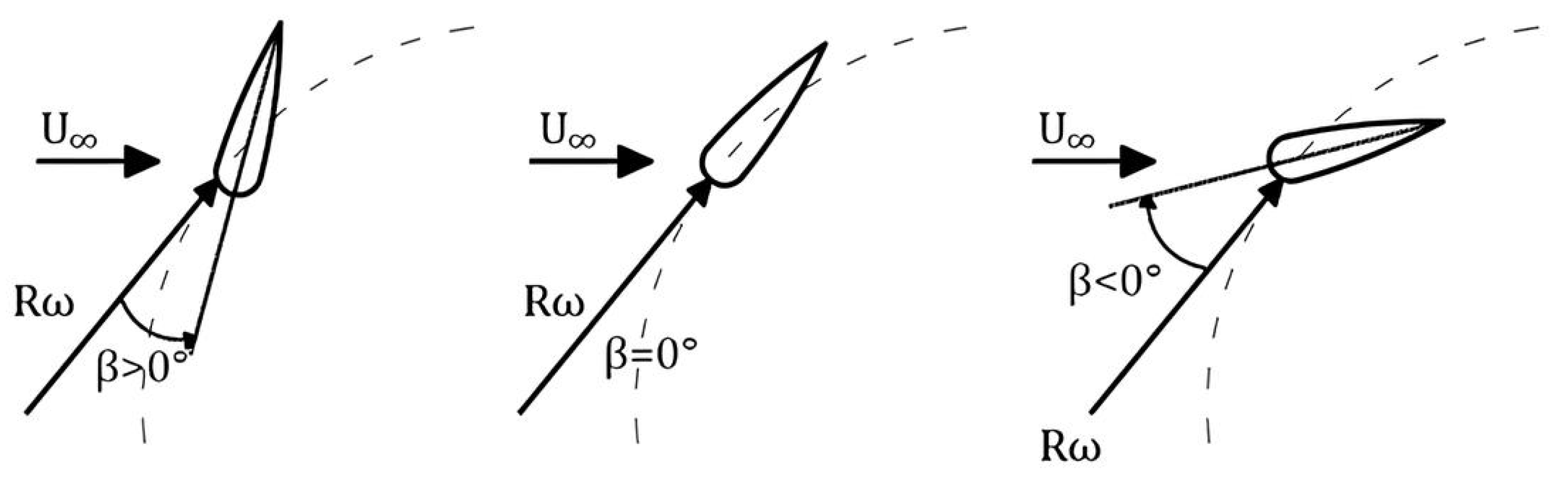Schematic representation of the blade pitch angle for a VAWT blade.