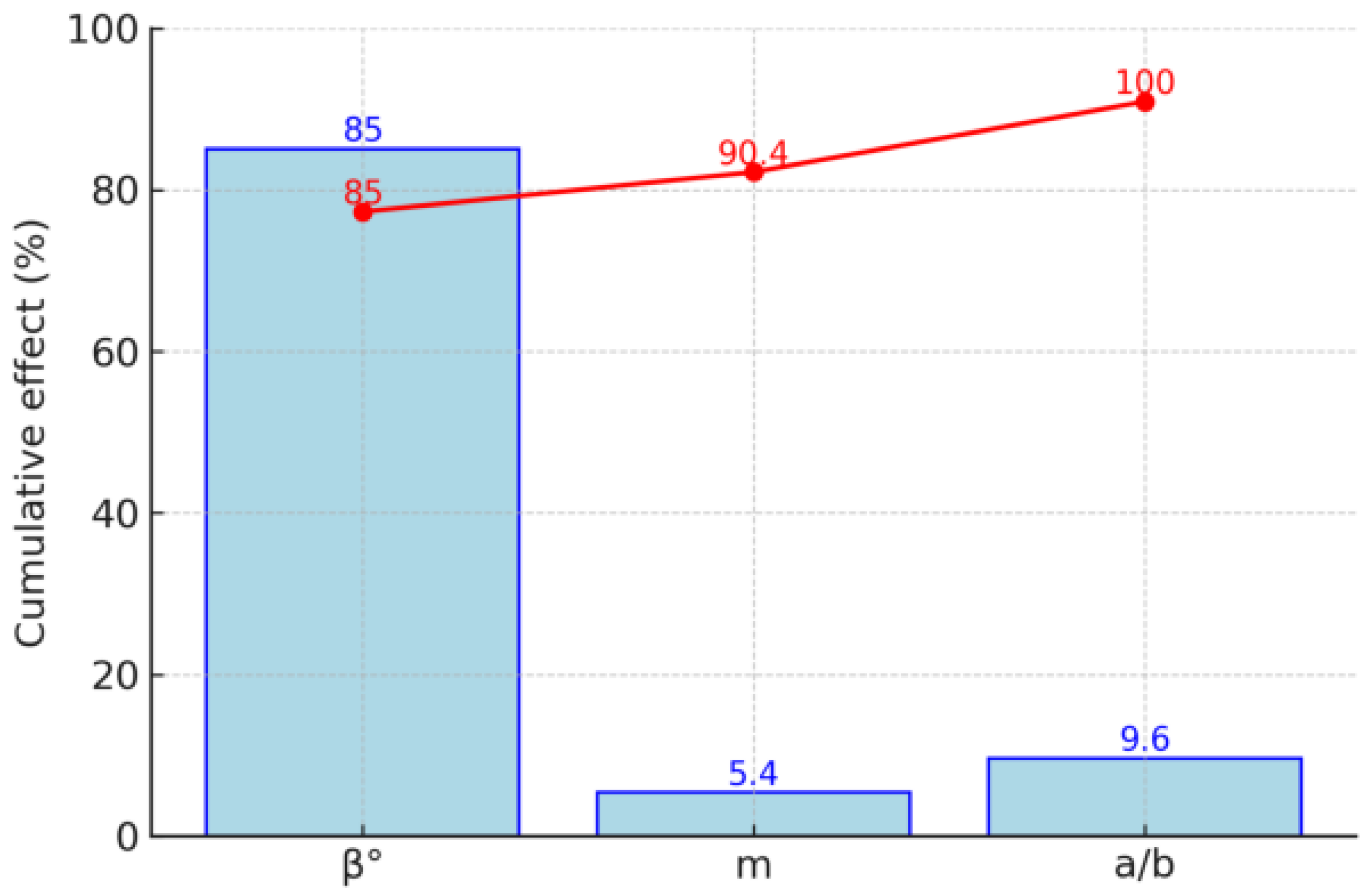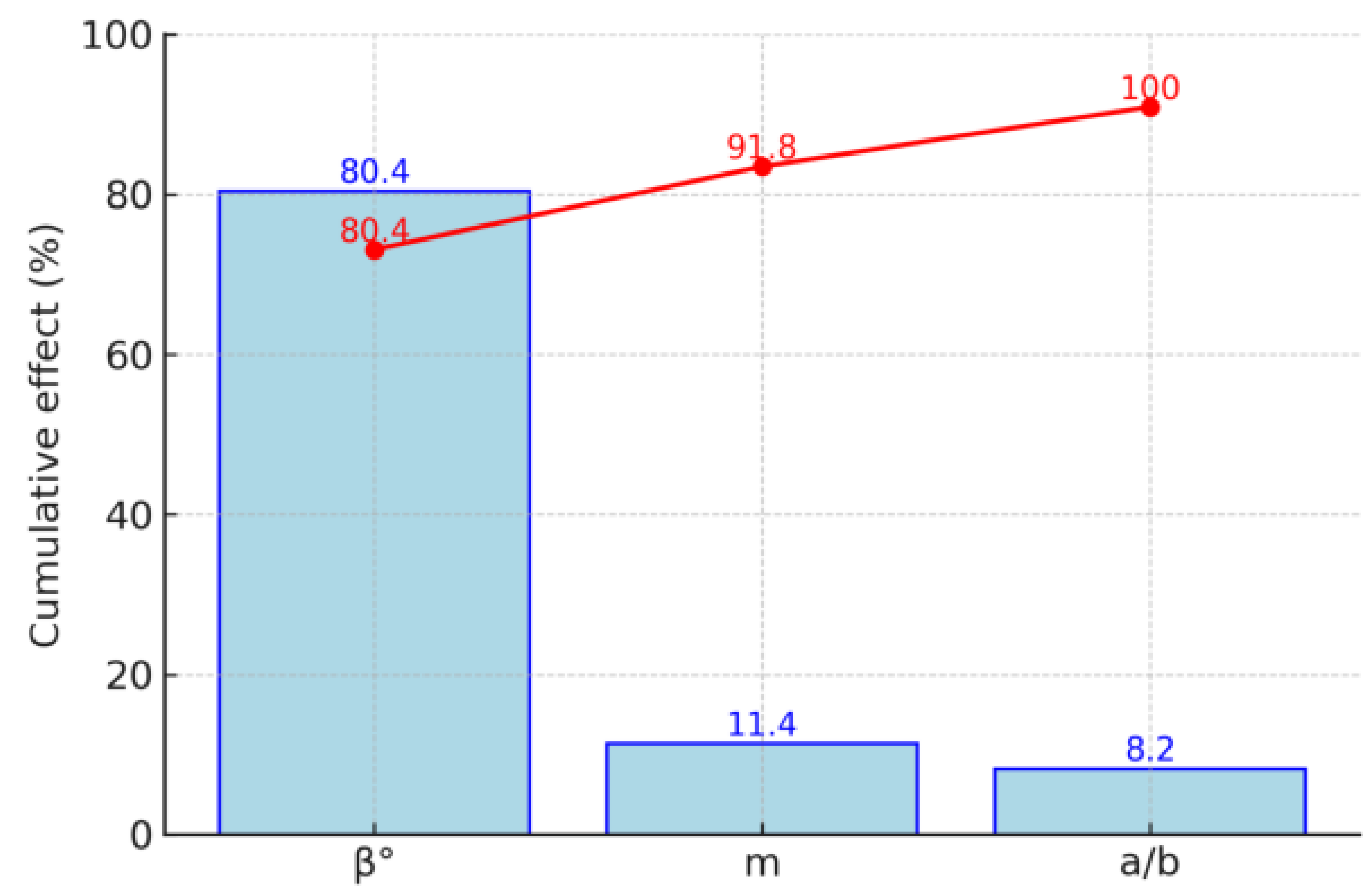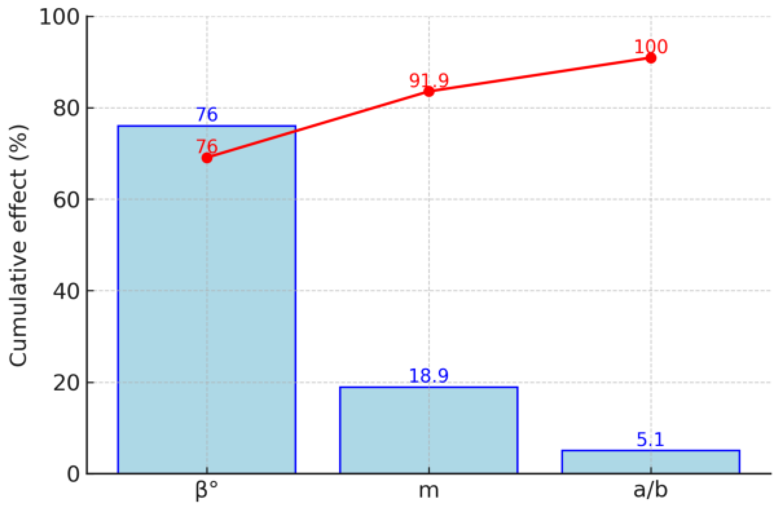 CoI analysis at . Pitch angle () contributes 80.4% of the total effect, while m and contribute 11.4% and 8.2%, respectively.