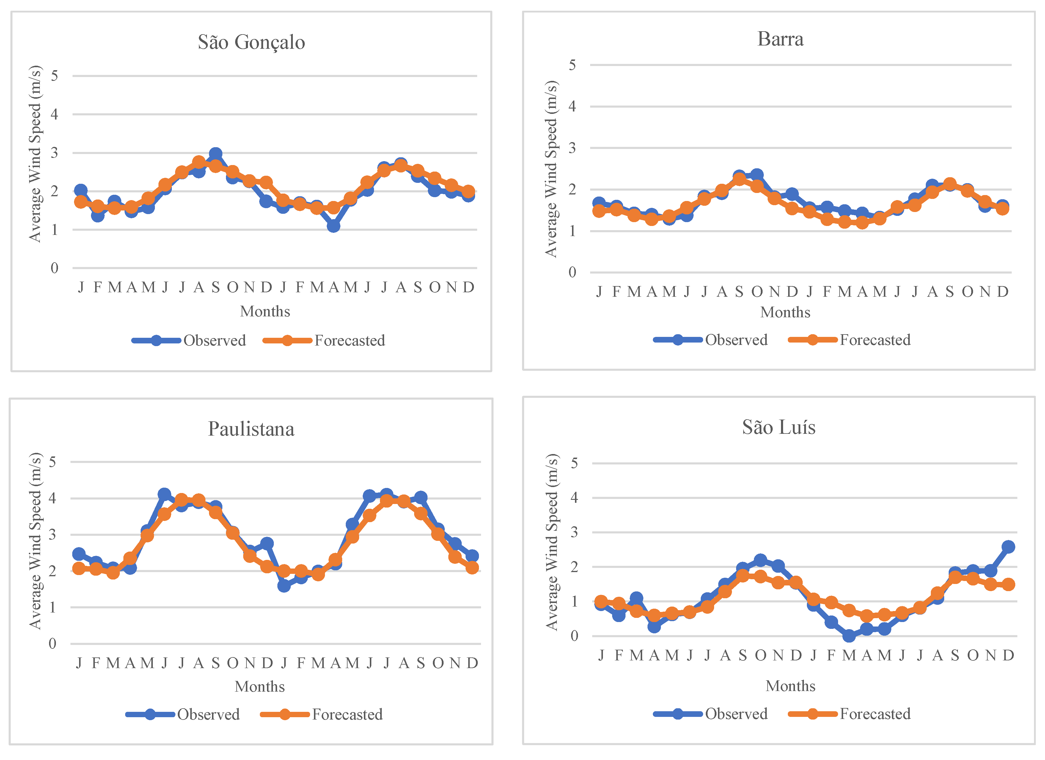 - Camelo, H.N.; Lucio, P.S.; Leal, J.B.V., Jr.; de Carvalho, P.C.M. Proposal for Prediction of Wind Speed through Hybrid Modeling Elaborated from ARIMAX and ANN Models. Rev. Bras. Meteorol. 2018, 33, 115–129. [Google Scholar] [CrossRef]