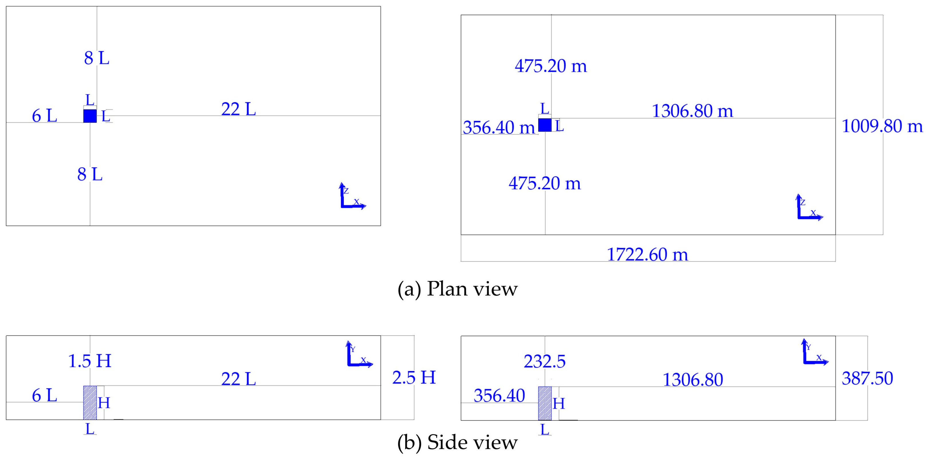 - Idrissi, A.; El Mghari, H.; El Amraoui, R. CFD simulation advances in urban aerodynamics: Accuracy, validation, and high-rise building applications. Results Eng. 2025, 26, 105148. [Google Scholar] [CrossRef]