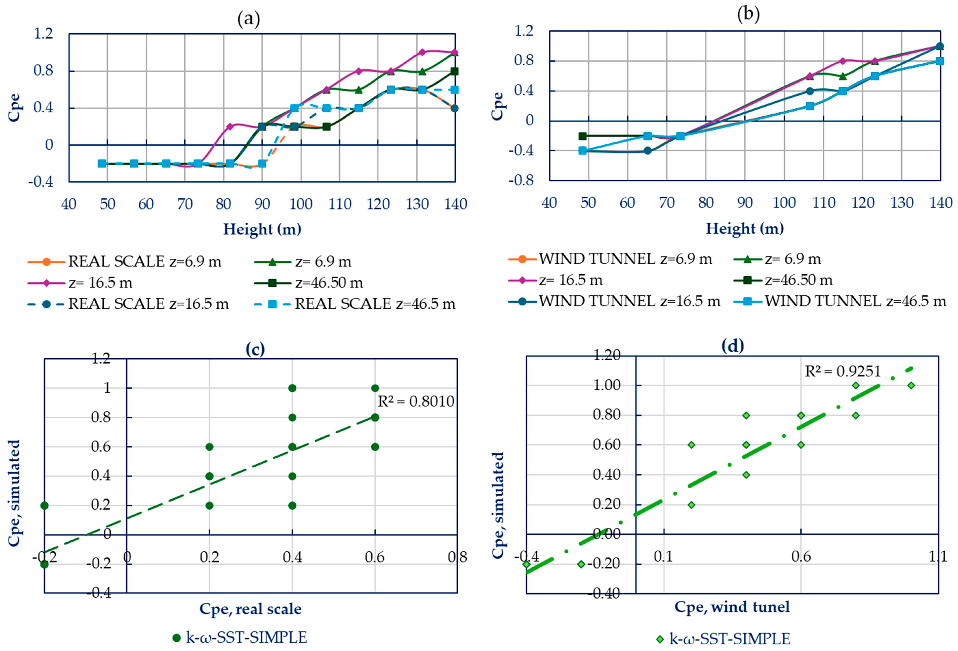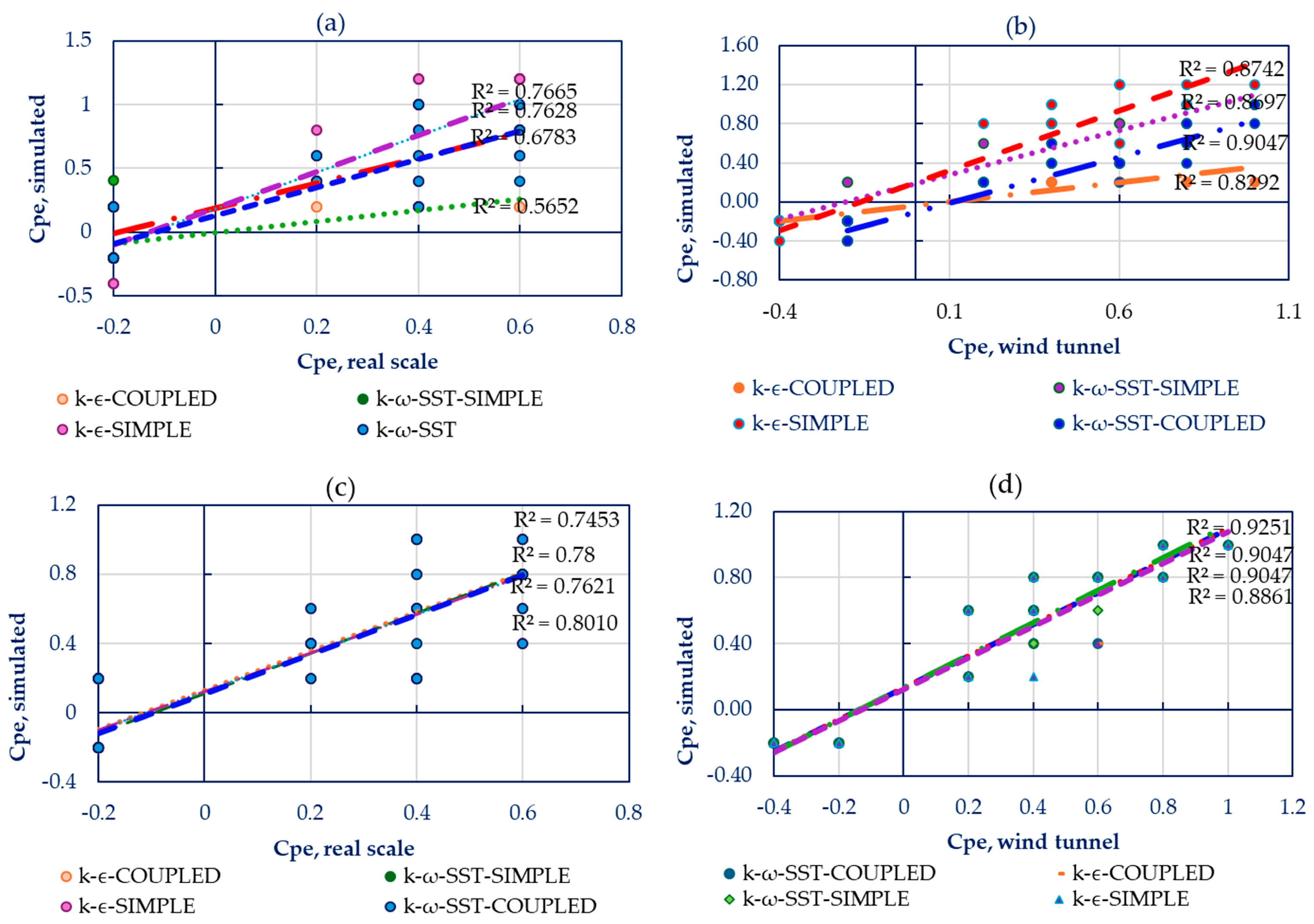| CFD simulation advances in urban aerodynamics: Accuracy, validation, and high-rise building applications | Turbulence models such as k-ε-RNG and SST-ω-Standard were compared, including parameters like kinetic energy and the dissipation rate. To validate this research, wind tunnel studies were used. The result was that both models are reliable, but the k-ε model has a lower computational cost. | [28] |